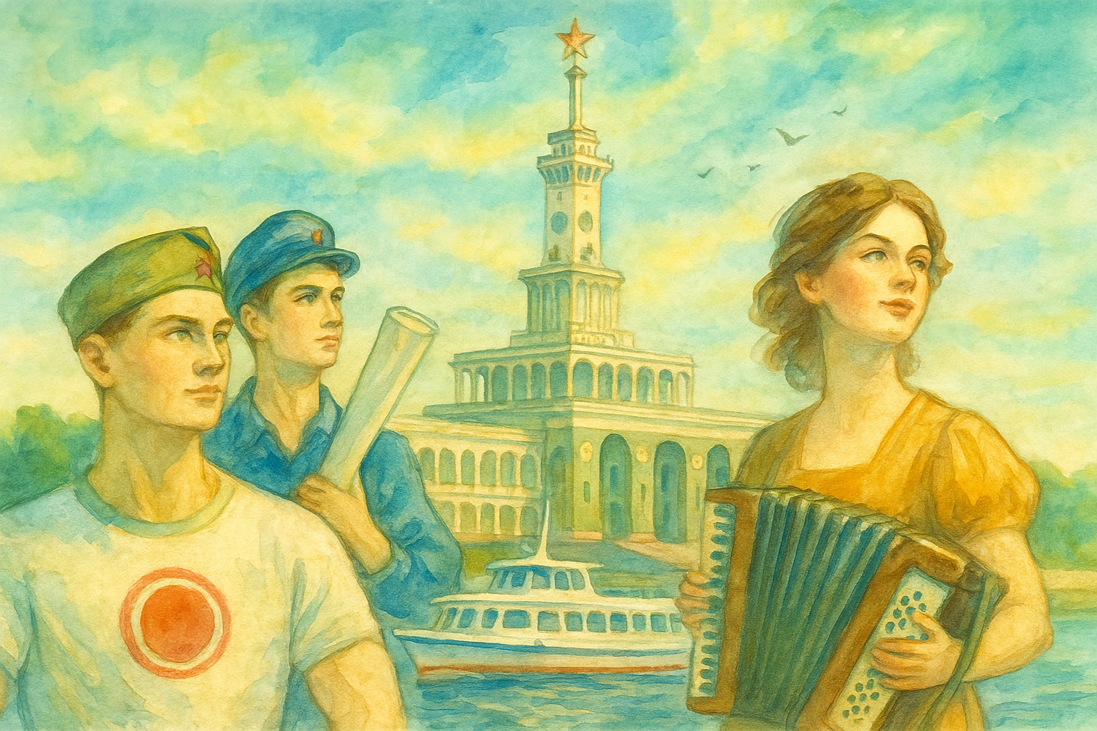 Эта стройка настолько будоражит общественность, что попадает даже в кино тех лет. Уже через год на экраны выходит фильм известного режиссера Г. Александрова «Волга-Волга». На нашем квесте в парке Северного Речного вокзала мы не просто гуляем по местам съемок фильма, но и разбираемся в особенностях той обстановки, в которой это кино создавалось.